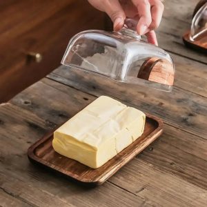 Solidna drewniana podstawa zapewnia stabilność oraz trwałość, a przemyślana konstrukcja ułatwia codzienne użytkowanie. Oprócz przechowywania masła, może służyć również jako elegancki pojemnik na przekąski lub dodatki. Łatwa w czyszczeniu i wygodna w użyciu, doskonale wpisuje się w nowoczesne oraz klasyczne aranżacje.