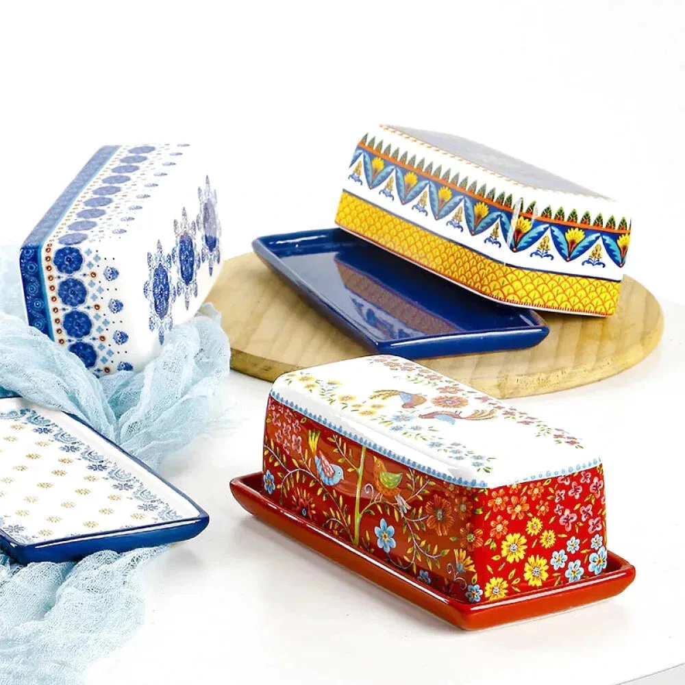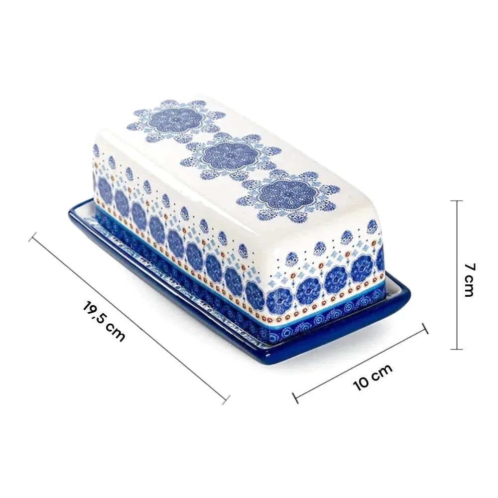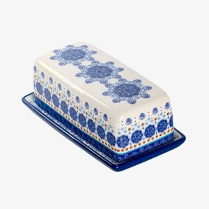Wprowadź do swojej kuchni elegancję i ponadczasowy styl dzięki tej wyjątkowej maselniczce w kolorze granatowym. Jej dekoracyjny wzór inspirowany ceramiką artystyczną przyciąga wzrok i nadaje stołowi wyjątkowego charakteru, jednocześnie pozostając praktycznym elementem codziennego użytku. Maselniczka Granatowa została zaprojektowana z myślą o zachowaniu świeżości masła oraz wygodnym serwowaniu każdego dnia. Ceramiczna konstrukcja chroni masło przed powietrzem, wilgocią i zapachami z lodówki, dzięki czemu masło zachowuje swój naturalny smak i odpowiednią konsystencję. To nie tylko praktyczne naczynie, ale także dekoracyjny element stołu, który podkreśla styl kuchni i sprawia, że codzienne posiłki stają się bardziej estetyczne i przyjemne. Elegancki granatowy kolor doskonale komponuje się z jasnymi i drewnianymi blatami, tworząc harmonijną i ciepłą atmosferę w kuchni.