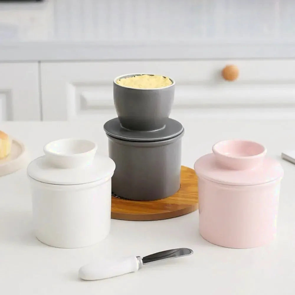 Wprowadź do swojej kuchni tradycję, wygodę i naturalny styl dzięki tej ceramicznej maselniczce z systemem wodnym. Maselniczka Kura została zaprojektowana tak, aby masło pozostawało świeże, miękkie i gotowe do smarowania każdego dnia bez konieczności przechowywania w lodówce. System przechowywania z wodą tworzy naturalną barierę ochronną, która chroni masło przed powietrzem, zapachami i zanieczyszczeniami, dzięki czemu zachowuje ono swój smak oraz idealną konsystencję. Ceramiczna forma prezentuje się elegancko na blacie kuchennym i na stole, wprowadzając do wnętrza przytulny i tradycyjny klimat. To praktyczne rozwiązanie dla osób, które lubią funkcjonalne akcesoria kuchenne i chcą cieszyć się świeżym masłem każdego dnia w wygodny sposób.